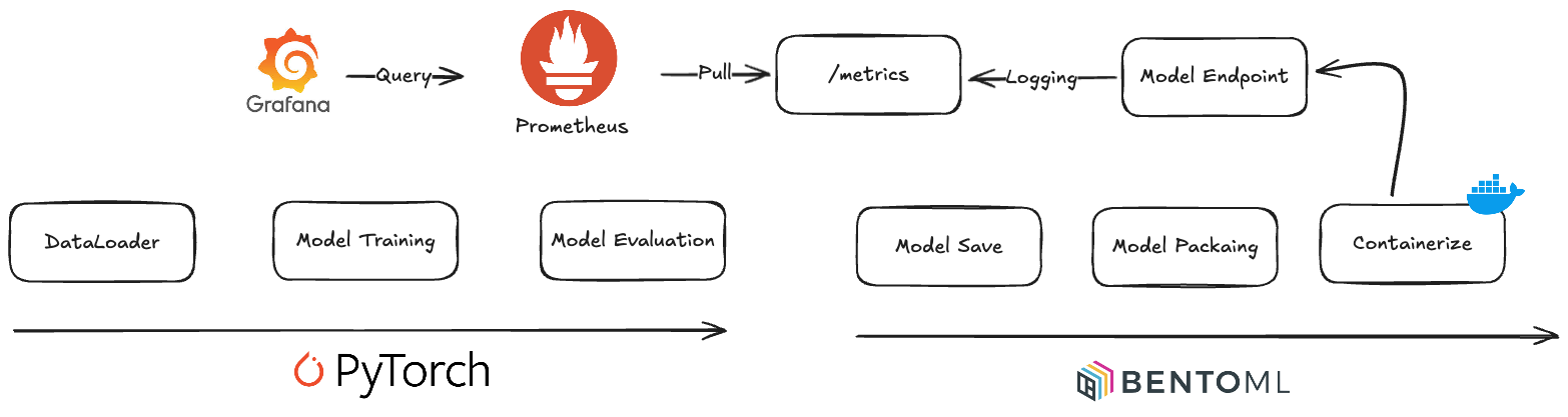 지금까지 PyTorch 모델을 학습하고 BentoML Model로 저장하고 패키징한 뒤 컨테이너화하였고 이를 docker run 명령어를 통해 배포하였습니다.